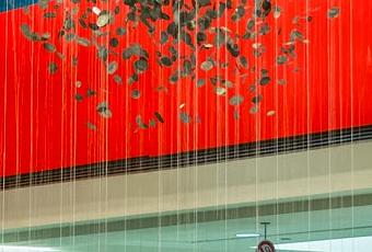 Question de temps fait allusion aux univers intérieurs habitant chaque individu et ses rapports avec les forces extérieures de son quotidien. Les formes ovales de la structure suspendue constituent un noyau qui se dissout progressivement au travers des fils. Le graphite griffonné sur l'une des surfaces de chaque ovale est un rappel de l'enseignement Kanien'kehá : ka de la Création qui met en scène le Bon Jumeau et son Frère, le Jumeau trouble-fête. La trace de ce dernier interrompt et perturbe la perfection de l'autre. En ce faisant, l'équilibre est établi.