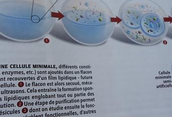 -« Et pourtant PIERRE les esprits intelligents n’ont pas manqué ! je ne fais que citer THOMAS CECH /SIDNEY ALTMAN (NOBEL EN 89), JOHN SUTHERLAND/B.GERLAND/M.POWNER/ J.SCOSTACK (NOBEL 2009) et des tas d’autres ….Mais tant que les manips de labo n’auront pas délimité exactement tout ce qui a pu se passer jadis , ce consensus ne sera pas total et il reste du chemin à faire car tu as vu que le chemin est à la fois statistique et « subtilement » physico chimique …..C‘est pourquoi il faut comprendre les directions différentes choisies par d’autres équipes …. et je t’ai parlé de celles qui se fixent un départ « truqué » avec une « peau de cellule » artificielle ( une vésicule de phospholipides ) puis y enferment ce qu’il faut pour mitonner une cuisine moléculaire , l’aide à se déclencher à l’intérieur et synthétise des acides nucléiques etc. (voir ma photo)