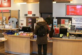 Première expérience à Bristol. L'office de tourisme sur situé Bordeaux Quay, quelle belle idée, dans un endroit très passant pour les piétons. Il est dans une continuité de restaurants et bars, sur un quai dédié à la plaisance et aux petits bateaux touristiques qui traversent ce port dynamique du Sud Ouest de l'Angleterre. Tout près de là, un musée de ville, un bateau musée et un musée des sciences attirent les locaux et les visiteurs. L'office se compose d'une vaste pièce rectangulaire, environ 120 m2, principalement occupé par une boutique de souvenirs sur plus de la moitié de sa surface. Tout est logoté à la gloire de Bristol et de l'Angleterre et les prix sont souvent situés dans une fourchette allant de 0,90 à une centaine de £. Notez que les produits sont visibles en ligne. Une zone de diffusion de documents est agrémenté d'écrans TV standards où sont diffusés des films promotionnels. Par ailleurs un espace important est dédié à l'accueil des étudiants et des stagiaires linguistiques. Enfin, la banque d'accueil derrière laquelle siègent deux conseillères en uniforme, tout à fait à l'aise en français. Rien de particulier à signaler sauf l'importance de l'espace souvenirs. Les éditions des sites à visiter sont tout à fait présentes. Cet office reste dans la veine d'une présentation classique, mais très fortement orientée centre de profit.