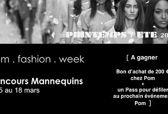 Une nouvelle saison commence, les collections se dévoilent depuis quelques jours, les couleurs pétillantes s'exposent et donnent déjà le ton de la tendance vitaminée de ce spring/summer 14 ... Une rentrée printanière que la boutique POM a choisi de fêter en organisant sa deuxième POM FASHION WEEK avec de jolies surprises, des collaborations mode & artistiques et un grand CONCOURS DE MANNEQUINS ouvert à toutes les jeunes filles, femmes en fleur, fashionistas, mannequins en devenir qui aiment terriblement la mode.