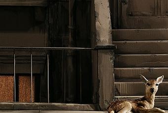 En s’inspirant des clichés des grandes villes du monde, Andy Rudak et Luc Aan de Wiel ont créé des scènes de villes avec du carton avec de l’éclairage et des animaux miniatures.