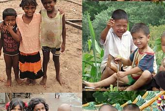 Enfants (1)Au cours de mes voyages, j’ai toujours aimé saisir des instantanés d’enfants.Rencontres aléatoires et fortuites, au hasard de mes déambulations. Aucun de ces enfants ne se ressemble. Chacun a son histoire, sa culture. Aucun ne vient du même village, ni souvent du même pays.Mais rapprochés ainsi, ils se répondent en écho. Toujours en groupe, ils sont. Une complicité joyeuse les anime, et les bras, volontiers, s’entremêlent. Rien que pour le plaisir du souvenir et de leur sourire, ci-joint un kaléidoscope…