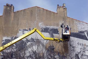 Six mois après l'intervention de JR, dans le quartier de la Belle de mai à Marseille, l'opération de décollage de certaines photos a commencé. En effet, certains propriétaires des pignons n'ont accepté le collage des immenses photos en noir et blanc que pour une période de temps limitée. Avant que la pluie, le vent et le soleil ne fassent alors leur oeuvre d'érosion, ce sont deux hommes suréquipés qui ont été chargés de faire disparaître le collage.C'est donc au kärcher et avec une grue que la barque inversée flottant sur le bleu du ciel et ses stoïques occupants à la tête en bas ont été effacés de ce mur, au lieu dit "le coin pour tous" dans le quartier de la Belle de mai à Marseille. L'opération aura durer quelques heures. Je passais par hasard et j'en ai fait ce petit film de 2mn 25… Merci aux "décolleurs" qui se sont laissés filmer…