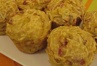 Ingrédients :- 2 beaux persils tubéreux- 150g de farine- 1 cuillère à café de levure chimique- 100g de lardons ou allumettes- 2 oeufs- 50g de noisettes- 50mL d'huile d'olive- 100mL de lait végétal (lait d'amande pour moi)Faire revenir les lardons dans une poêle afin de les cuire, retirer l'excédent de gras.Eplucher les persils tubéreux et les râper.Battre les oeufs avec l'huile d'olive. Ajouter en pluie la farine et la levure. Incorporer ensuite le lait. Enfin, ajouter les légumes râpés, les lardons cuits et les noisettes coupées en deux.Verser la pâte dans des moules à muffins (ou un moule à cake), égaliser la surface.Cuire au four (th6/180°C) pendant 20-25 min pour les muffins ou 45-50 min pour un cake.Laisser refroidir un peu avant de démouler.Servir froid.