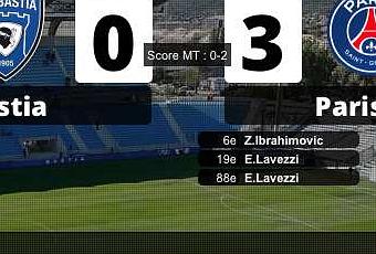 Lavezzi s'offre un doublé sur une déviation d'Ibra, le défenseur Bastiais se trou ce qui profite à l'attaquant Parisien. Le match est maintenant plié.