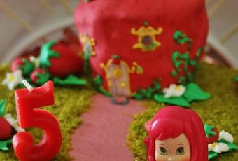 1. Préparer un cake de base. Le laisser refroidir puis le tailler à la forme de la maison de Charlotte aux fraises. L'enduire au pinceau d'un peu de confiture de fraises. Etaler finement la pâte à sucre puis en recouvrir le cake. Avec les restes de pâte à sucre réaliser des fraises de différentes tailles.