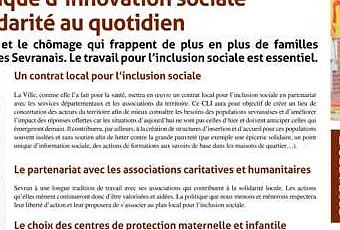 La Ville, comme elle l’a fait pour la santé, mettra en oeuvre un contrat local pour l’inclusion sociale en partenariat avec les services départementaux et les associations du territoire. Ce CLI aura pour objectif de créer un lieu de concertation des acteurs du territoire afin de mieux connaître les besoins des populations sevranaises et d’améliorer