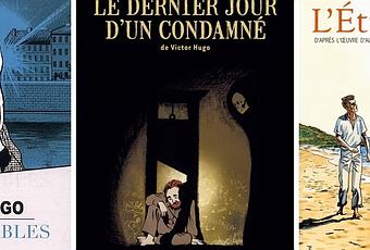 Loin de moi l’idée de critiquer gratuitement cette initiative. Néanmoins, ce qui semble être devenu la nouvelle mode en matière de classique commence à m’embêter sérieusement. Depuis quelques années fleurissent à foison des adaptations des plus grands chefs d’œuvre de la littérature en BD ou en manga. Pour tester et vous en parler plus en détail, je me suis penchée sur trois cas : Les Misérables de Victor Hugo dans sa version manga, Le dernier jour d’un condamné du même auteur en version BD et enfin L’étranger de Camus. Aucune de ces œuvres ne sont réputées pour être facile à lire. Dans ces adaptations, le dessin tient une importance capitale. Pour Les misérables, il est difficile de comprendre l'intérêt du choix du manga. Qu'est-ce que cela apporte? C'est un classique français, le style asiatique paraît donc peut justifiable. Ce livre pourra peut-être toucher les ados fervents lecteurs de mangas, mais pourquoi iraient-ils lire ce classique alors que l'histoire n'a aucun rapport avec la culture asiatique? Le style très particulier de ce genre de dessin se justifie par rapport à une culture, qui n'est pas du tout celle de l'œuvre française. Ensuite, L'étranger de Camus opte pour un dessin tout ce qu'il y a de plus classique. Pas de prise de risque. C'est bien fait mais ne révèle rien de particulier. En revanche, ma préférence va pour Le dernier jour d'un condamné. Le dessin se veut plus stylisé, plus simple, un peu à la façon d'un schéma. Il y a une sorte d'économie du trait et des couleurs. C'est plus original, et en même temps la simplicité correspond bien à l'œuvre originale. Si la question du dessin est déjà épineuse, s'attaquer à ces monuments de la littérature pose aussi un autre problème. Comment adapter des œuvres massives tant au niveau de la longueur que du contenu? Là encore, les romans sont forcément estropiés. On perd bien trop de détails pour que ces "résumés" rendent compte des œuvres originales. C'est tout au plus des initiations aux œuvres mais certainement rien de plus. Si l'adaptatrice des misérables a pris le soin de signaler les changements par rapport à l'œuvre de départ (et ils sont très nombreux), les autres ne s'en embarrassent même pas. En même temps, quand on raccourcit autant ...Enfin, chacune de ces œuvres se caractérisent à divers degré dès l'origine par une réelle tendance de l'auteur à l'introspection et aux réflexions philosophiques sur soi. Les adaptateurs s'en sortent pour le coup tous assez bien pour en rendre compte. Souvent, on a le droit à une page consacrée au personnage principal et une sorte de voix off qui rapporte ses pensées. C'est bien fait et c'est une agréable surprise. Pour Camus, je dis : pourquoi pas. Les romans en intégral sont particulièrement redoutables : tout le monde n'arrive pas à en venir à bout. En découvrir une version colorée, illustrée et simplifiée peut être sympathique. Mais il ne faut surtout pas systématiser cette pratique au risque de pousser les jeunes à se tourner exclusivement vers ce genre d’ouvrages, plus simple et plus rapide à lire. Cela veut aussi dire les éloigner de l’œuvre originale, qu’ils craindront d’autant plus qu’ils les verront toutes comme difficiles à lire puisque ils ne les auront jamais essayées. En effet, transformer les classiques en BDs et mangas instaure une sorte de distance entre les œuvres et leur lectorat, leur conférant un caractère complexe qu’ils n’ont pas systématiquement mais que les plus jeunes redouteront d’autant plus qu’ils ne s’y frotterons plus.