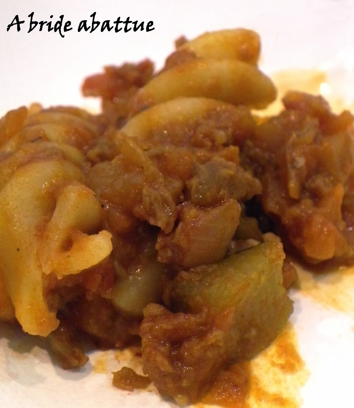 Ensuite un boeuf bolognaise, dont je regrette qu'il soit accompagné des mêmes pâtes. Il semblerait que ce ne sont pas les mêmes consommateurs qui achèteront le premier plat et le second. Pourquoi pas. Validons puisque cette forme de pâte accroche bien la sauce, qualité capitale pour cette recette.