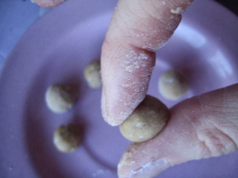 - Quand vous avez une texture homogène, elle reste assez collante. J'ai utilisé l'astuce du blog de Mélanie : transformer, la main, la pâte en petites boules avec un peu de sucre glace, afin que les gommes ne collent pas entre elles. Là, je suis en mode pâte à modeler, j'ai 4 ans ; )