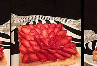 Voilà le dessert de ce soir: une tarte aux fraises!Ben franchement pas facile à disposer avec un moule carré!