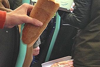 Le sans-gêne de certains dépasse tout entendement. On a tout vu dans les transports publics genevois. Transport de personnes et d’animaux de compagnie ce qui va de soi. Mais aussi transit d’objets encombrants. Sans parler des interminables discussions par téléphone interposé et du spectacle que nous inflige bon nombre d’usagers qui confondent bus et trams avec la salle de bain pour les femmes qui se maquillent ou qui se coupent les ongles ou la salle à manger pour les plus pressés qui cassent la croûte...comme ici sur la photo prise dans un tram à l’heure du déjeuner au niveau de Rive, un jour vers la fin de l’année 2013.