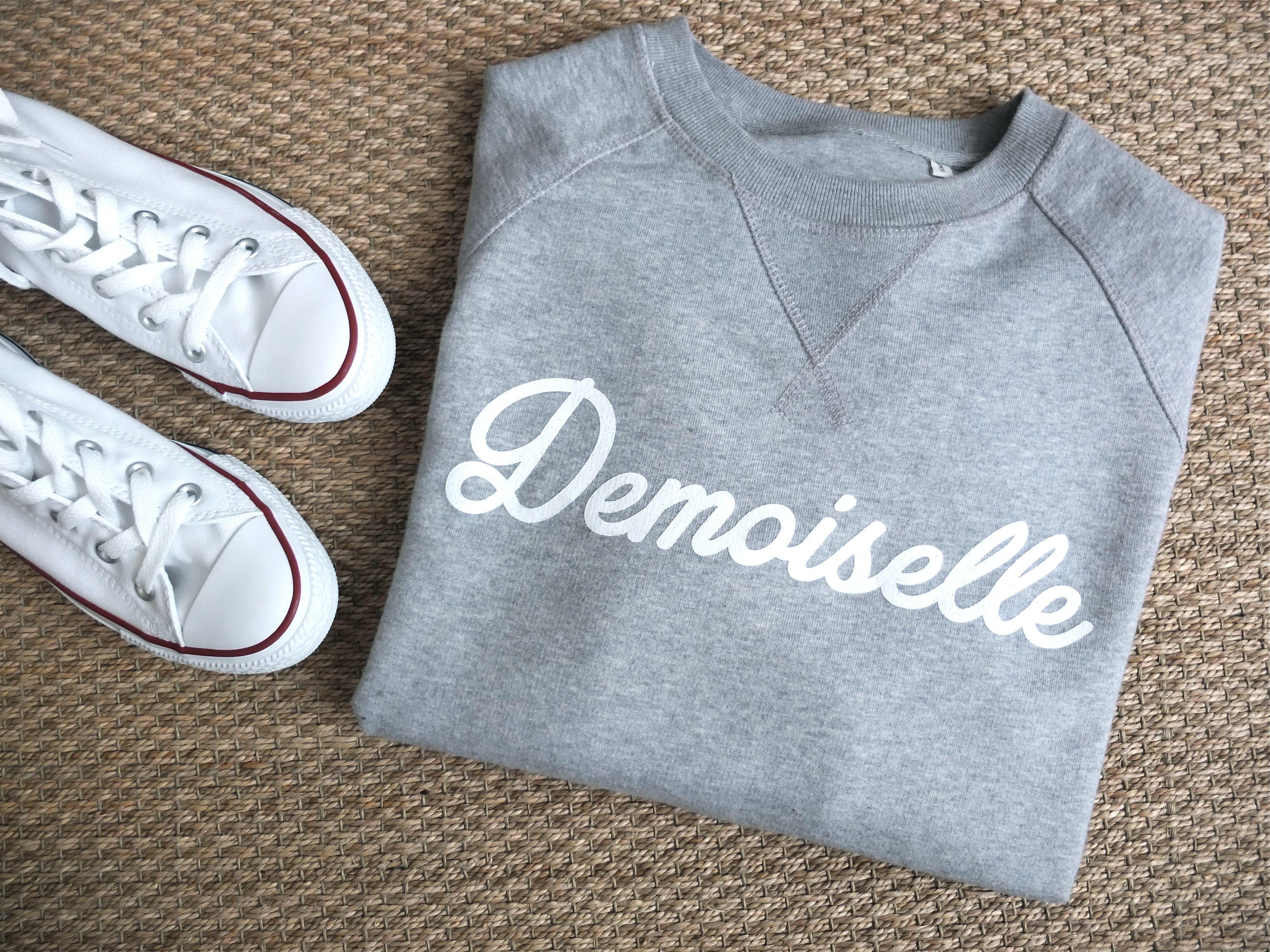 Un sweat Demoiselle par Ma Mademoiselle Pierre (sa nouveauté !) en molleton tout doux. Je l’ai choisi en gris et il va avec tout. Plus très envie de le quitter en fait !