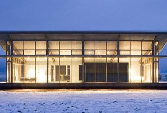 La Glass Farmhouse est une impressionnante villa située dans le nord de l’Oregon. Sa façade est composée entièrement de grandes baies vitrées qui offrent une vue spectaculaire sur l’horizon presque désert qui l’entoure. Cette villa réalisée par le studio Olson Kundig Architects est basée sur la rénovation d’une vieille ferme. Sa conception respecte l’ossature de bois traditionnelle des granges de la région. Elle a été conçue et réalisée comme une boîte de verre contemporain qui flotte au-dessus de son environnement. Cette villa de verre est orientée plein sud vers les montagnes et offre une vue imprenable sur la nature. Cette maison s’adapte à toutes les saisons, profitant de la lumière et du soleil. Les été pouvant être très chauds dans la région, des grandes fenêtres ouvrantes en verre à haut rendement assurent un refroidissement et une ventilation transversale de l’espace, ce qui réduit la nécessité de climatisation.