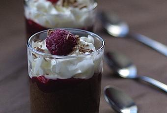 Au moment de servir, déposer une cuillère de coulis sur la mousse .... et chantilly, copeaux de chocolat .... et plus si affinités !