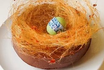 Pour décorer, j'ai réalisé un petit nid en sucre filé. Contrairement à ce qu'on pourrait penser, c'est assez simple à faire (mais mamma mia, ma cuisine est dans un état!!!).
