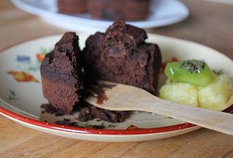 Note : Les fondants sont encore plus fondants après un petit passage au réfrigérateur, alors n'hésitez pas à les préparer à l'avance. Si vous préférez les gâteaux un peu plus cuits, prolonger un peu la cuisson dans le four éteint, sachant qu'ils seront du coup assez friable, du fait de l'absence de gluten dans la pâte. Pour la même raison, je ne recommande pas de les faire en grande version, car le gâteau aurait alors vraiment tendance à s'effriter. Si vous tentez toutefois l'expérience, compter alors une trentaine de minutes de cuisson.