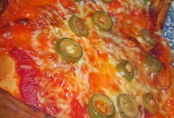 Ingrédient :*1/2 pâte rectangulaire* 3 c à soupe de coulis de tomate* 4 olives vertes* 4 c à soupe de parmesan râpé (je n'en mets pas)* 60g de mozzarella allégée * 30g de gruyère râpé allégé * 8 à 10 champignons émincés (je n'en avais pas du coup sur la photo il n'y en a pas)* 2 tranches de jambon (que je remplace par 3 tranches de bacon)