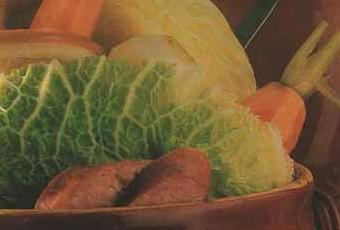 - Plongez les tranches de ventrèche dans le faitout et laissez cuire 15 minutes. Ajoutez les saucisses (après avoir piqué la peau à la fourchette) et tous les légumes. Poursuivez la cuisson à frémissement pendant 45 minutes