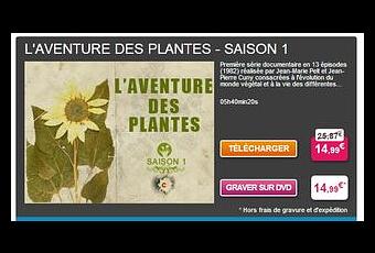 L'INA Institut National de l'Audiovisuel propose en ce moment l' AVENTURE des PLANTES la meilleure série documentaire jamais réalisée sur les plantes. En téléchargement ou sur DVD au prix de 14.99 € les 13 premières émissions diffusées en 1982. La musique et le style a un peu vieilli, mais le sujet est toujours d'actualité et vraiment très bien traité.