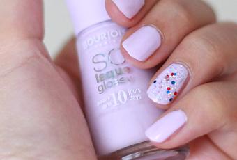 Quelle belle journée de printemps nous avons eu ! Bon, la météo prévoit de la pluie pour la fin de semaine mais ne boudons pas notre plaisir ! J’ai sorti un vernis pastel mauve très doux, quelques paillettes et ça me plaît bien !