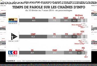 Et que l'on ne nous parle pas de coïncidence. Le CSA a pointé « certains déséquilibres non encore compensés » dans ses relevés, en précisant même que 43 % du temps d’antenne de BFM TV consacrés à l'enjeu national des élections municipales étaient squattés par le parti d'extrême droite entre le 10 février et le 7 mars 2014. Un chiffre effarant, à mettre en regard avec le sort médiatique fait au PCF, pourtant 3eme parti en terme d'élus municipaux, présentant des candidats sur 7500 listes contre moins de 600 pour le FN.
