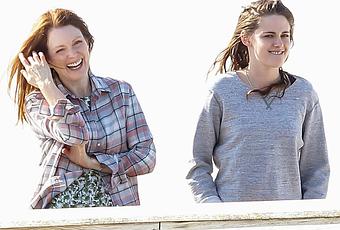 Les actrices Kristen Stewart et Julianne Moore se trouvaient hier vendredi 21 mars à New York sur le tournage de " Still Alice"'. Depuis le début les paparazzi profitent des prises de vue en extérieur pour mitrailler les deux femmes , mais au lieu de se mettre en colère elles ont préféré en rire et je trouve ça plutôt audacieux de leurs parts.En effet Kristen nous avez habitué dans ce genre de situation à offrir un joli doigt aux photographes, mais apparemment Julianne qui a des années d’expériences dans le milieu du cinéma lui a appris à relativiser .
