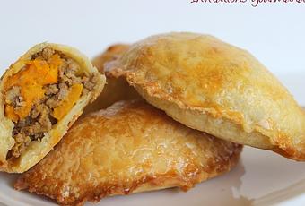 Ce qu’il y a de bien avec les empanadas (chaussons salés) c’est que l’on peut les farcir avec ce que l’on veut, des légumes, du poulet, des œufs, du bœuf… les possibilités sont multiples. Si j’ai choisi d’associer du bœuf avec du potimarron, ce n’est pas forcément par préférence mais plutôt parce que j’ai fait les fonds de placards! J’ai pris la recette de la pâte sur le magazine « Saveurs » que j’adore. J’ai beaucoup aimé ces chaussons, ils se dégustent chauds ou froids, servis avec avec une salade verte, ils font un repas complet