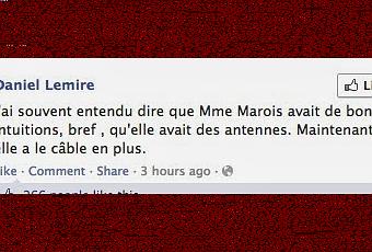 Puis, on a supporté le débat des chefs, une soirée relativement plate elle aussi, tellement formatée et sans réelle discussion à part les spins habituels... Louis T a eu cette note d'humour le lendemain.