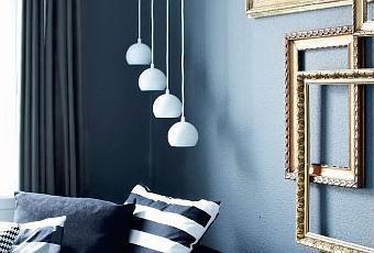 Voici un appartement de 66 m2 où la palette de couleurs est bien riche : gris, noir, bleu, violet, rouge et même une touche doré sur un mur !