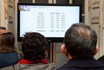 La soirée a débuté après la fermeture des bureaux de votes (entre 18h et 20h selon les villes de La Cub). Place aux dépouillements. Puis résultats ! De nombreuses suprises sont sorties des urnes. Alain Juppé confirme son quatrième mandat dès le premier tour avec un score de 60,9. Les opposants affichent un résultat de 22,5 pour Vincent Feltesse, 6,6 pour J.Colombier, 4,6 pour Vincent Maurin.