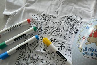 Bientôt Pâques ! Et la joie des préparatifs ! La bonne idée de la semaine revient à Sergent Major qui a sorti de jolis oeufs de Pâques contenant des crayons textiles et un tee-shirt à colorier. A déposer dans le jardin à la place des chocolats ou à consommer avant le jour J pour faire patienter, c'est selon...Ici, on a pas attendu! Aucun recoin n'a été oublié ...et la bonne nouvelle, c'est que le tee-shirt se colorie à l'infini avec ses feutres à encre lavable !