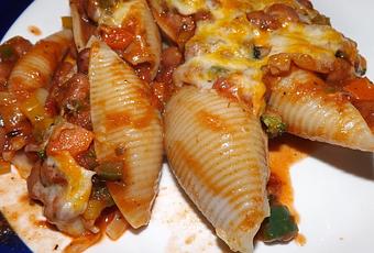 Ingrédients:- 20 grosses coquilles (environ)- 1 petite boîte de haricot pinto rouge- un pot de sauce simply natural tomate et champignon- 1 à 2 carotte- 1/2 brocoli (environ)-1/2 oignon-1/2 poivron vert- un peu de beurre- un peu de sel d'ail-un peu de persil- poivre-fromage de votre choix rappé Préparation:-Faite cuire vos pâte dans un gros chaudron pendant que vous couper tout vos légumes( commencer par les carottes et les oignons qui sont plus long à cuire) en petits petits morceaux ( plus facile pour remplir les coquilles).-Cuisez vos légumes avec le beurre dans un wok avec le couvercle jusqu'à ce que les carottes et les oignon soient a votre goût.- Quand vos les légumes sont prêts , ajouter les haricots (rincé) et la sauce et faire cuir a feu moyen entre 5 à 10 minutes.