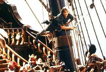 Pourtant, Hook fascine aussi. D’abord par le courage de Williams : pas facile, ce rôle. Casse-gueule au possible. S’il n’est pas ultra-convaincant en homme d’affaires, il est touchant en homme tout court, perdu au milieu de gosses délurés et se raccrochant comme il peut aux branches d’une maturité en loques. Face à lui, il y a LE moteur du film, le rôle-titre – et Dustin Hoffman nous délivre encore une fois une performance incroyable dont chaque excès devient un point d’orgue, parfait dans sa démesure lyrique. Si Robin épate, Dustin éblouit. Et du coup, insidieusement, on sent poindre, dans quelques plans magiques, une forme abâtardie de cette grâce qui cimente les contes de fées fondateurs et on s’aperçoit alors que, sous les flonflons persistants qu’on croyait indélébiles, la partition de John Williams développe quelques morceaux du merveilleux le plus pur.