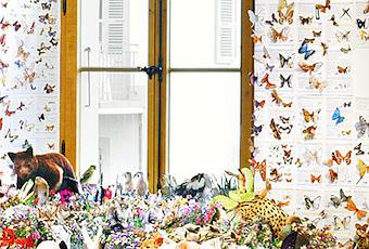 L’artiste italien, Andrea Mastrovito bien connu pour son amour du travail du papier a encore réalisé une belle prouesse. Habiller du sol au plafond une pièce d’une galerie avec une faune et une flore recomposée à partir de centaines de plantes et d’animaux découpés dans des manuels.