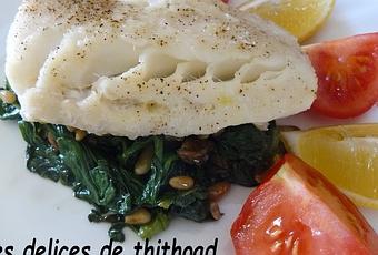 Répartir les épinards sur une assiette, déposer le poisson et servir avec les tomates et le citron.