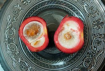 Il existe des variétés de mangoustanier qui fournissent des fruits comestibles, les mangoustans. Ils sont originaires d’Asie du Sud-Est mais on peut aussi en trouver en Amérique du Sud. J’ai appris qu’on pouvait en manger au Sri Lanka mais je suis passé à côté pendant mon séjour. Heureusement j’ai un ami qui était dans sa famille au Cambodge au même moment. Il nous a ramené des mangoustans parce qu’il adore ce fruit !! Il est vrai que ce fruit est très intéressant car il est très frais, très juteux avec un léger goût de litchi cependant la chaire est extrêmement tendre contrairement au Litchi et le fruit beaucoup plus gros.