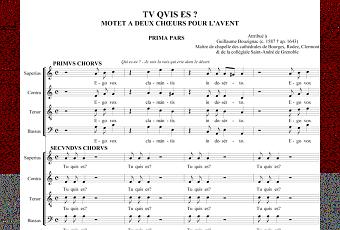 Un bon exemple de pièce en dialogue – la partition est gratuite en plus (et le chef de choeur – webmaster est sympa) : http://www.schola-sainte-cecile.com/2007/12/18/bouzignac-attr-tu-quis-es/