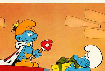 Titre : Les Schtroumpfs - Tome 9 : Le SchtroumpfissimeAuteurs : Peyo (scénario, dessins) ; Yvan Delporte (scénario)Editeur : DupuisDate : 1964Nul besoin d’être un érudit bédéistique pour connaître les schtroumpfs qui sont tant la base, que le classique de la bande dessinée. Les petites créatures bleus, demeurant dans des champignons, travaillant et vivant tous en une harmonie parfaire dans une société aux allures marxistes et chapotés par un Grand Schtroumpf, stéréotype même du vieux sage, les petits schtroumpfs semblent être la projection d’un monde meilleur, d’une société idéale et surtout d’un modèle de bonté, d’innocence et de naïveté dont on ne saurait se lasser comme on ne s’ennuie des contes. Dans le volet du schtroumpfissime, Peyo et Delporte n’hésitent pas à faire voler ce parfait modèle en éclat. Alors que le Grand Schtroumpf quitte le village quelque temps pour chercher l’ingrédient manquant à sa potion magique, les petits schtroumpfs laissés sans autorité décident d’élire chef provisoire. Plus démagogue que les autres, plus futé et sans doute plus humain et moins schtroumpf que les autres, l’un d’entre eux parvient à se faire élire en promettant à tout un chacun monts et merveilles. Bien entendu, arrivé au pouvoir, il n’en fera rien, mais se parera de doré, se fera nommer Schtroumpfissime et imposera lentement mais sûrement, une dictature des plus autoritaires.