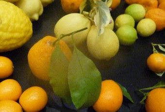 Cela faisait longtemps que j'avais entendu parlé des agrumes Bachès mais sans avoir encore rencontré leurs infatigables pépiniéristes. C'est chose faite car Michel et Bénédicte Bachès étaient près présents lors des journée Omnivore 2014 : d'abord, auprès de William Ledeuil qui a parlé de son utilisation heureuse de leurs agrumes toujours renouvelés. Puis seuls en conférence. Qui a commencé par un long déballage de Michel Bachès pour nous montrer une magnifique profusion d'agrumes de toutes sortes d'espèces.