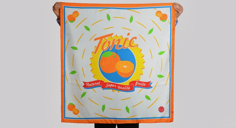 Vous pourrez faire votre choix parmi un trio d'agrumes énergique: mandarine, citron ou orange imprimé sur des créations en 100% twill de soie.