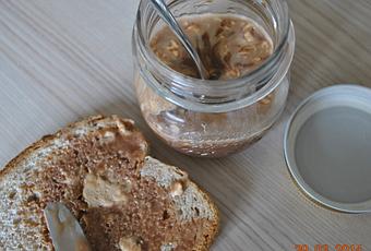 Une pâte à tartiner toute simple qui m'a tout de suite tape dans l'oeil chez Virginie car et oui je participe pour la 3ème fois à son concour. C'est vraiment chouette d'avoir le gout du mars sur sa tartine ;)