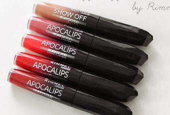 Comme vous voyez sur la photos j'ai quatre "Apocalips" et un "Show Off", en réalité c'est exactement la même chose... sauf que les mecs du marketing chez Rimmel ont dû se dire: "Non, mais les p'tites frenchies ne vont rien comprendre notre (super) humour anglais, on va leur changer le nom du product". Ouais bah moi je dis dommage car je trouvais qu' Apocalips c'était un chouette jeu de mots et bien plus accrocheur que "Show Off". Donc si vous achetez ces produits en France vous aurez des Show Off et si vous les commandez chez Asos ou en Angleterre ça sera des Apocalips. MAIS c'est la même chose hein, que je ne vous emmêle pas les pinceaux hein :p