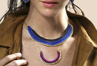 Revenons-en aux créations d’Emyline. On retrouve des belles couleurs, des colliers plastrons délicats, des boucles à tomber, des manchettes et autres bracelets tressés.