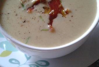 Velouté de pommes de terre et poireau au jambon de Parme