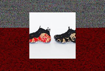 Quant à la Supreme x Nike Air Foamposite One Red, elle a une base rouge contrastée par le même motif. Toutes les deux ont une semelle extérieure translucide icy.