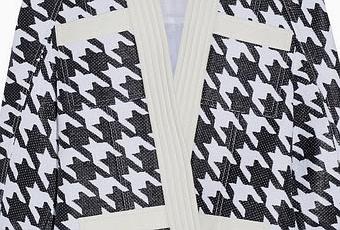 Quand Balmain se met au pied-de-poule ça donne cette superbe veste en pied-de-poule tissée qui aux premiers abords peut être vite considérée comme vieillotte mais qui cache dans son ADN un pure style rock qui sera parfait aussi bien avec une jupe en cuir comme lors du défilé ou alors avec un jean lacéré pour vos virées en ville et c'est pas Riri ou Rosie qui vont vous dire le contraire...