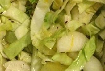 Jetez les premières feuilles extérieures du chou, coupez-le en deux dans le sens de la longueur et coupez chaque demi-chou en lanierres. Pelez le chou rave, coupez-le en deux puis en fines lamelles. Râpez le zeste du citron sur la salade. Epluchez-le à vif, récupérez les pulpes sans les pépins et ajoutez-les dans la salade avec les graines de fenouil. Assaisonnez avec le sel, le poivre, l'huile et le vinaigre. Mélangez bien, servez de suite ou bien placez au frais pour plus tard.
