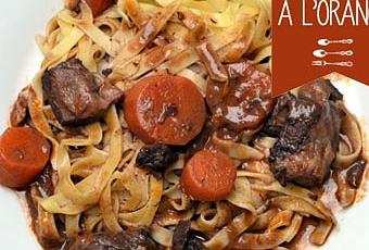 Seule ou accompagnée ? Cette jolie daube, longuement mijotée, est aussitôt prête à être dégustée. Mais pour une version « gros mangeurs », la servir avec des tagliatelles fraîches, simplement cuites « al dente » est l’assurance d’un succès à l’unanimité !