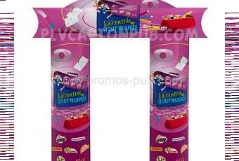 Véritable pôle d’attraction pour la clientèle venue découvrir de nouveaux produits, et gammes de produits dans un salon, l’arche plv invite à entrer en même temps qu’elle renseigne et divertit. Posée à l’entrée d’un stand pour véritablement y “planter le décors”, l’arche plv offre de nouvelles façons de percevoir et recevoir l’information. Couleurs, lumières, formes se fondant dans le thème abordé, comptoir, affichage de plancher, clip animé, porte cartes pour table imprimés, tout ce qui a trait à la présentation lors d’une manifestation peut s’y fondre ou s’y inscrire avec dynamisme.